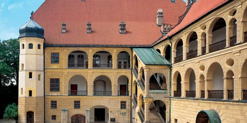 The majestic Trausnitz Castle was built in the 13th century in beautiful Landshut, the Gothic gem on the River Isar. The interior of the castle is still impressive today: the arcades in the castle courtyard, the painted scenes from the Commedia dell'arte and the ornately furnished living quarters characterise the medieval ancestral castle of the Wittelsbach family. Trausnitz Castle is also famous for its magnificent Renaissance halls and the extensive collection of art and antiques that vividly illustrate the life of the Wittelsbach dukes.